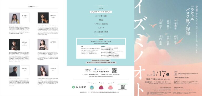 イズミノオト 第13回 ラヴェル バスク風ノ彩譜(うた)2026年1月17日(日) 15:00開演 14:30開場