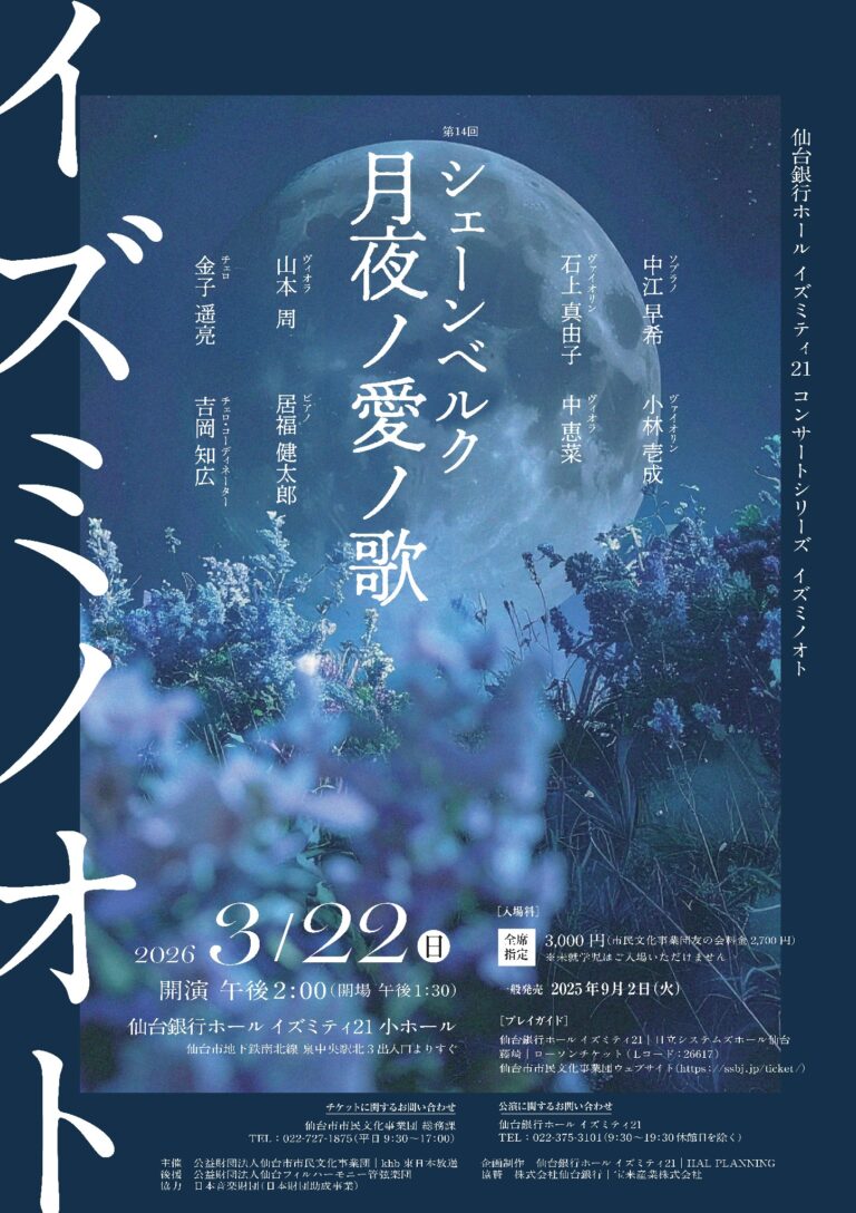 イズミノオト 第14回 シェーンベルク 月夜ノ愛ノ歌2026年3月22日(日) 14:00開演 13:30開場